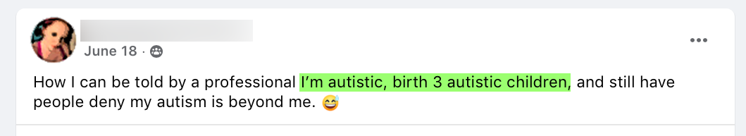 In a public post on her personal page, the mother makes the extraordinary claim that she and all three of her children have Autism Spectrum Disorder.