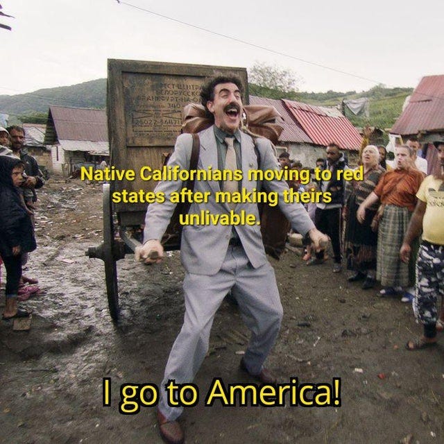 I’ve seen many memes floating around warning settlers not to vote for the same policies whose effects they were fleeing. I can assure you, that’s not going to be me. It would feel very unethical for me to vote in an upcoming election in a state I’m new to, and the Democrats have lost my support by adopting progressive politics into their platform. I wish I could vote in the California midterm election so I could vote for Michael Shellenberger, who is running as an Independent for California’s Governor.